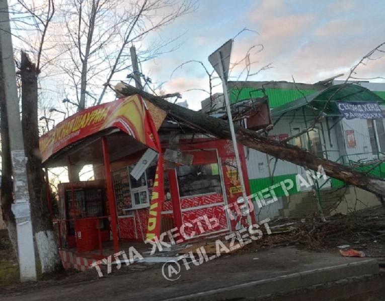 В Богородице порыв ветра повалил дерево и оно упало на павильон с шаурмой, повредив его.