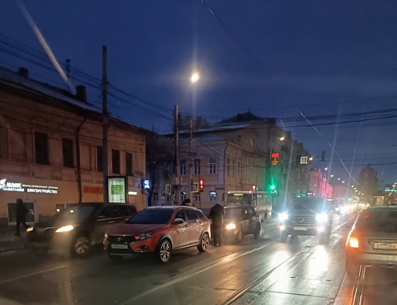 Авария с участием двух легковушек произошла в Туле. Напротив Гостиного двора столкнулись «Лада Веста» и учебная машина «Рено».