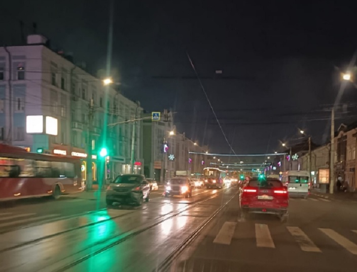 В Туле напротив Гостиного двора авария перекрыла обе полосы для трамваев