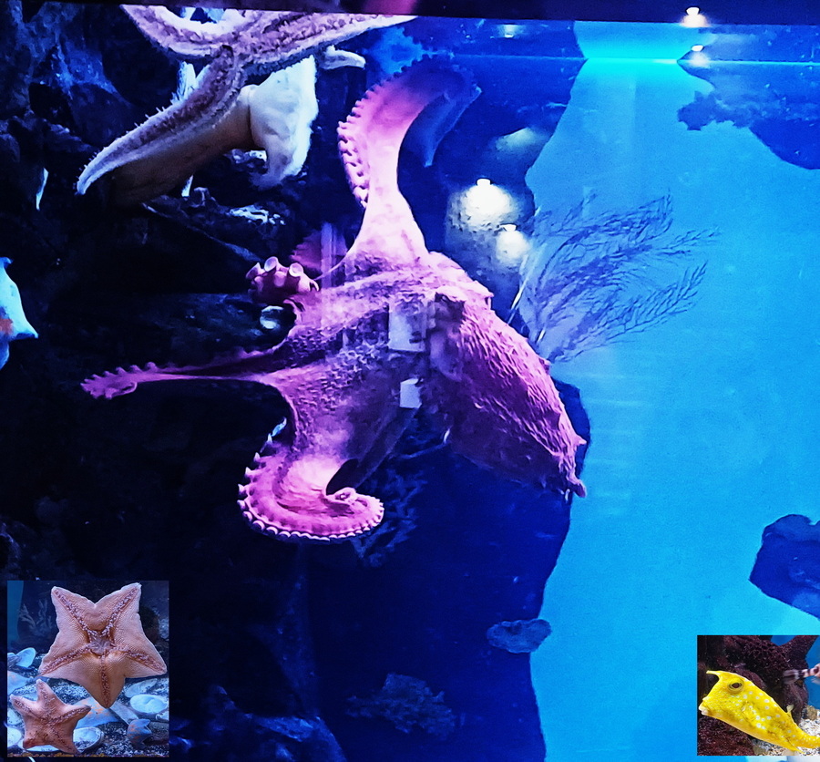 Что касается рыб, то вся чиновничья мелюзга в аквариумах вдруг стала носиться туда-сюда, словно желая прибиться к телу. Одна из куда бОльших особей («протоптер большой») на секунду обернулась и встала на дыбы, мол, и я с усами. Но места оказались заняты, ближе к Осьминогу на стекле уже «висели» морские звёзды и ленты – в награду!