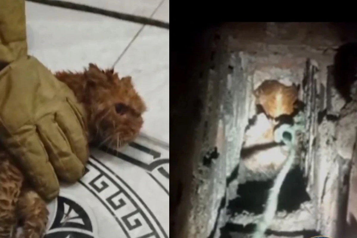 Кота в Новосибирске спасли из вентиляции с помощью телефона на швабре