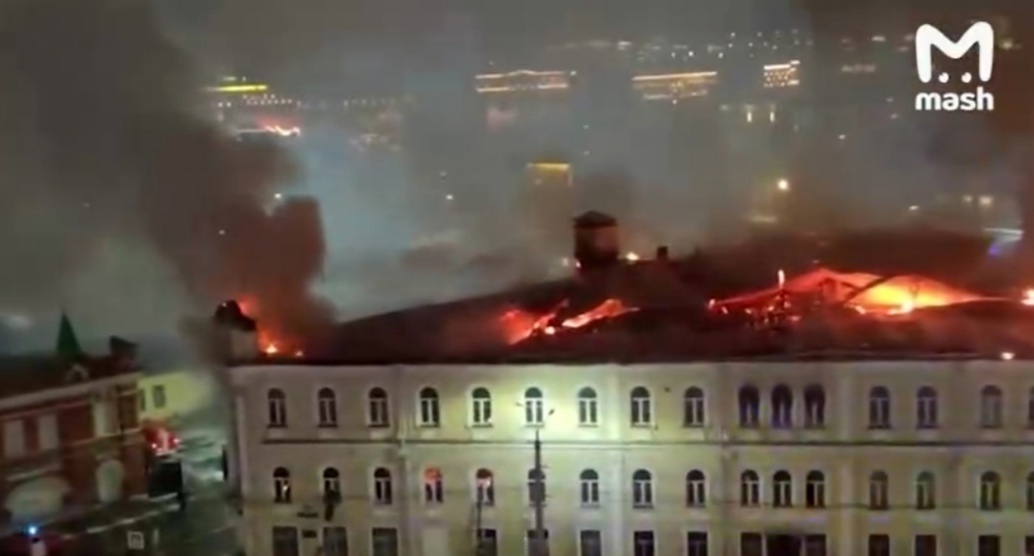 В старинном трехэтажном здании и крыша. На месте от МЧС работает 22 единицы техники и 65 человек личного состава. Сообщается, что у здания обвалился купол со шпилем. Крыша охвачена пламенем и . Однако пожарным удалось отстоять соседние здания. Рядом находится военная прокуратура.