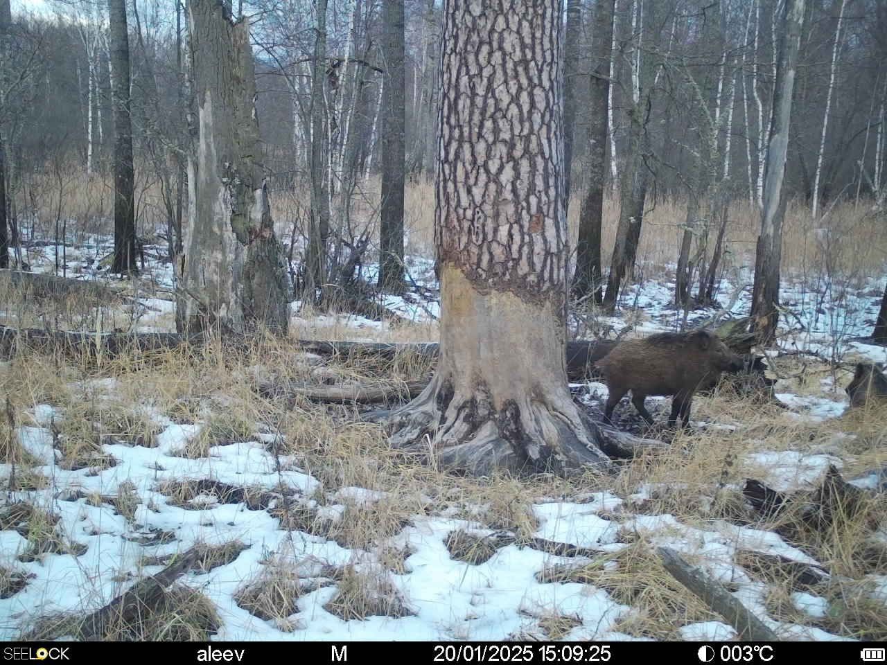В Рязанской области в Окском заповеднике фотоловушка сработала на кабанов, пришедших почесаться о старую сосну