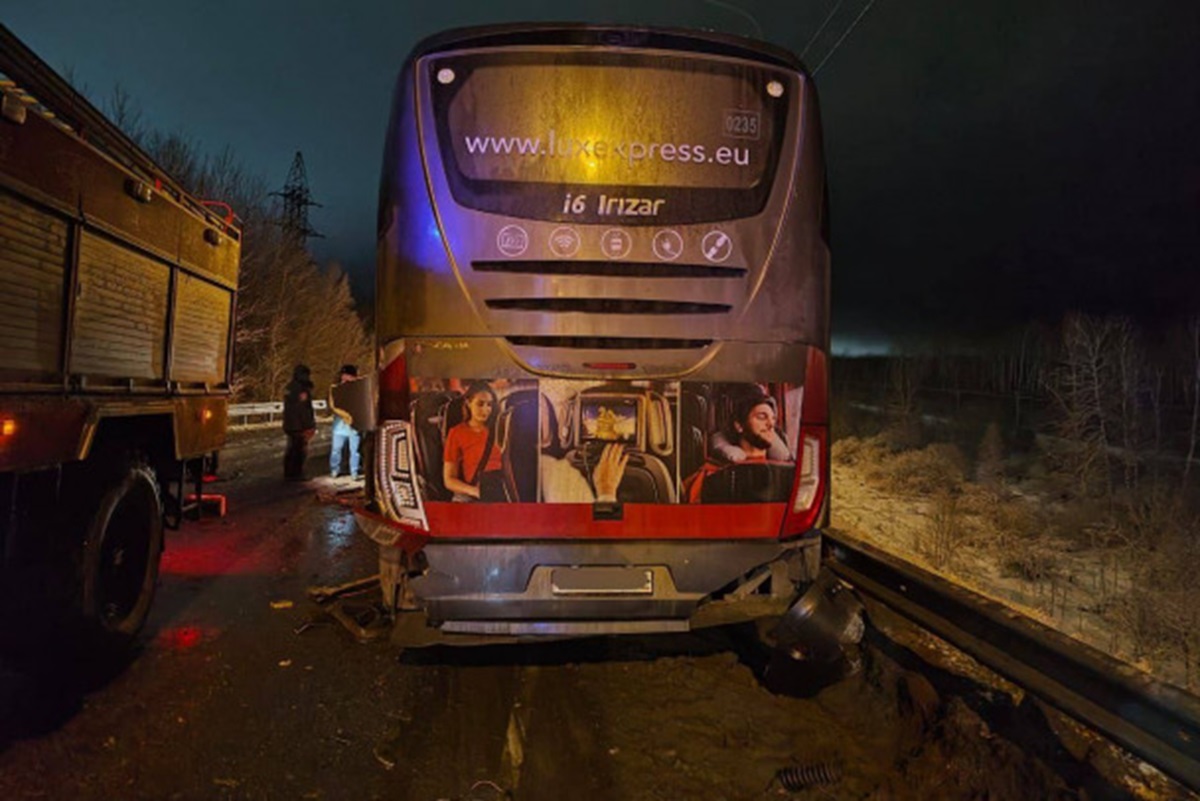 Крупное ДТП произошло поздним вечером 2 февраля в Ленинградской области на 135-м километре трассы А-180 «Нарва» возле поворота к промышленной зоне «Фосфорит». Около 22:45 по московскому времени международный автобус Lux Express столкнулся со снегоуборочной машиной.