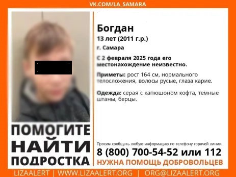Поисковый отряд «Лиза Алерт» 2 февраля сообщил об исчезновении 13-летнего юноши из Самары