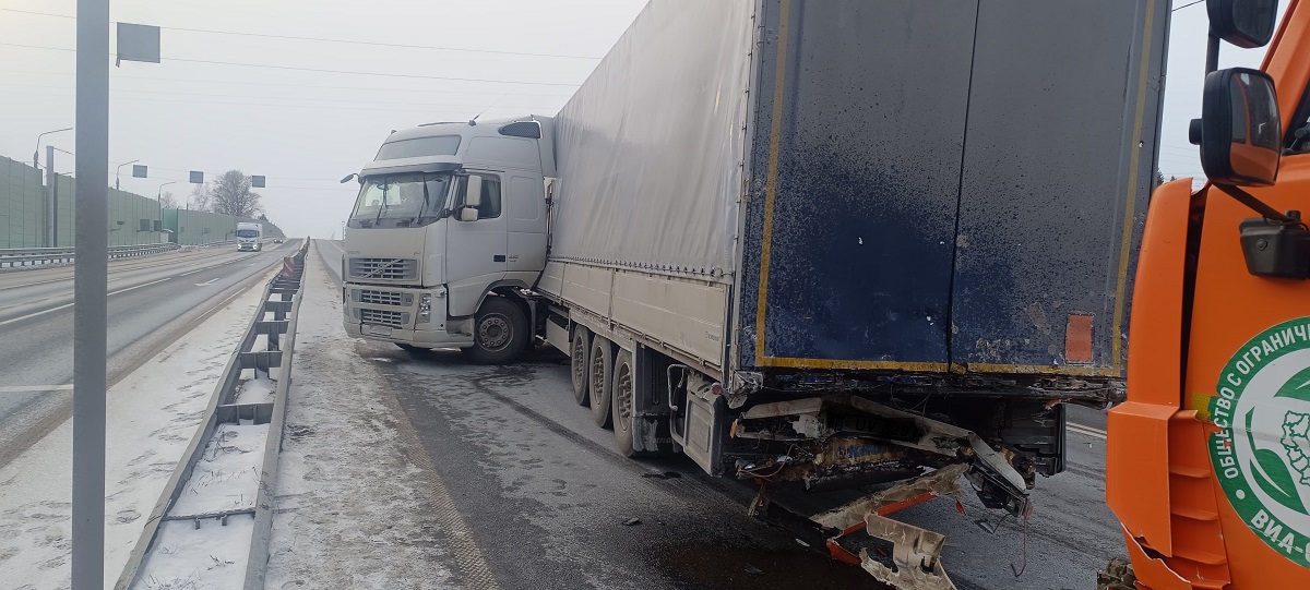 Мусоровоз врезался в две фуры на трассе М-1 в Смоленской области