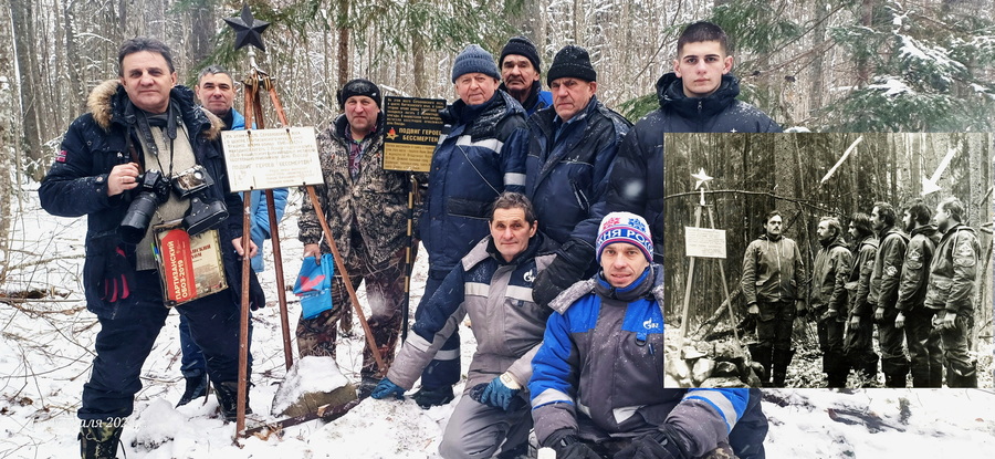 Добавлю, участники десанта повторили и символическое фото порховичей у обелиска, сделанное 43 года назад – на месте, где в войну и 80-х годах явно бывал Иван ВИНОГРАДОВ.
