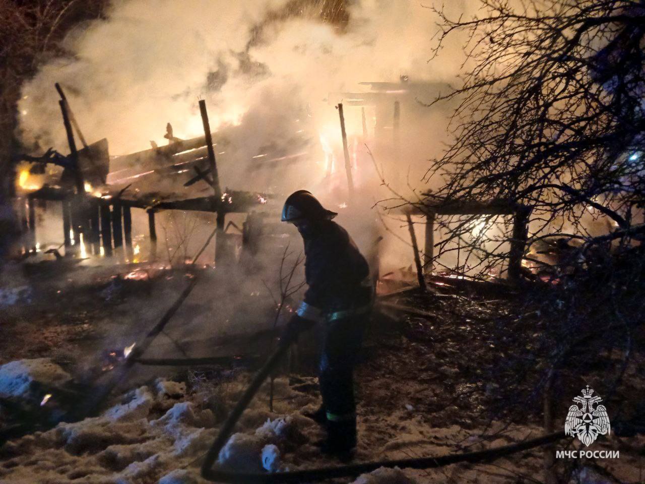 В момент прибытия пожарно-спасательных подразделений открытым пламенем горели жилой дом и хозяйственная постройка.