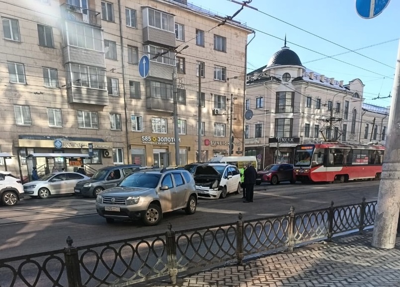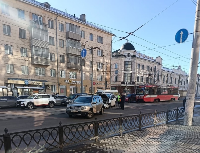 «Ситроен» врезался в «Рено Дастер». Удар был такой силы, что «Рено» выехал на встречную полосу и перекрыл ее. Также перекрытыми оказались двое трамвайных путей. Образовалась пробка.