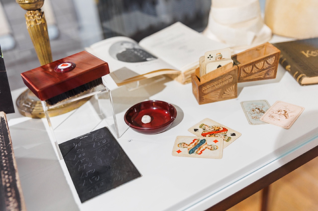 Здесь можно увидеть личные вещи супругов Толстых из закрытой коллекции. Среди них капор и флаконы для духов Софьи Андреевны, галстук Льва Николаевича, набор для карточной игры. А также подсвечник, принадлежавший родственнице писателя, – семейная реликвия, которая упоминается в романе «Семейное счастие».