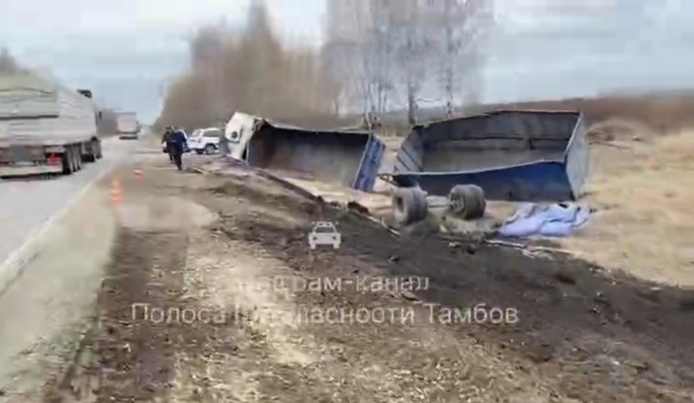 В Тамбовской области перевернулся в кювет грузовик, перевозивший рапс