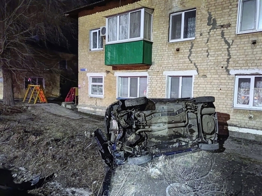 Ночью 21 марта в Самарской области легковой автомобиль на скорости опрокинулся на дороге и чуть не влетел в многоквартирный дом