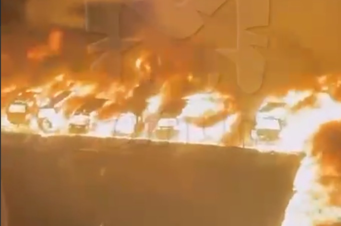 Как пишут местные жители, под утро они увидели в окнах зарево и услышали взрывы. Огонь уничтожил более 20 машин. Охраняемая стоянка находится на крыше гаражного кооператива, по словам жильцов, около 5 часов кто-то с нижнего яруса забросил наверх емкость с зажигательной смесью и убежал. От этого загорелась одна машина, но из-за ветра огонь быстро распространился.