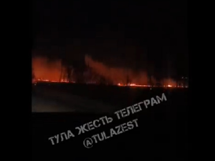 Под Тулой в посёлке Иншинский в полях случился пожар и полыхает трава