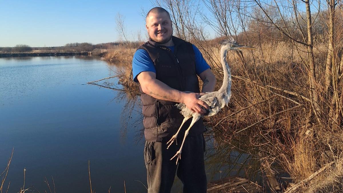 Житель Рязанской области приютил цаплю, а потом выпустил на волю