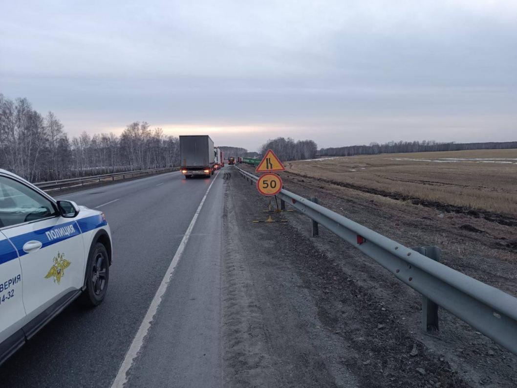 В Бердюжском районе Тюменской области на  участке федеральной автодороги сообщением Челябинск-Курган-Омск-Новосибирск по причине произошедшего накануне смертельного дорожно-транспортного происшествия установлены временные знаки, информирующие о необходимости снижения скорости для проезжающих автотранспортных средств.