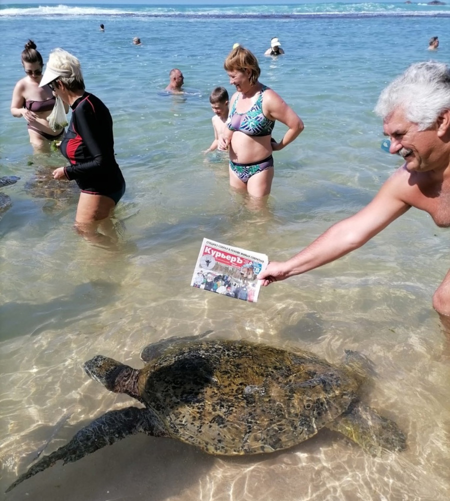 Перед этим дновцы, прихватив народную газету, умудрились выпустить в океан маленьких черепашек в ночи (чтобы хищники не напали и не съели). К слову, черепашата вылупляются на 75-й день, у каждой кладки свой номер.