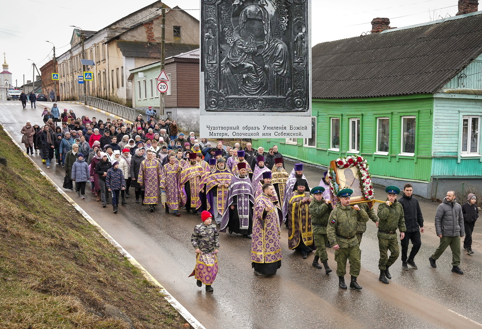 Для многих себежская святыня очень значима, так как молится на небесах за погибших ныне на СВО героях-пограничниках. Да и в начале XVII века было то же самое. Стрельцы, вынужденно покидая в войну отчий дом, прошли по старому Себежскому тракту с этой иконой в Опочку (и там она стала святыней). Прошли мимо моей малой родины: деревень Томсино, Костучиха, Клин, Ямищи, Одерёво и Горы победителей Пивница. Нет сомнений, что встречающие и плачущие земляки тоже молились за воинство – в том числе с ликом другой местночтимой Томсинской иконы Покрова Божией Матери. Остаётся надеяться, что война окончится, а после таких народных ходов, и в Томсино Богородица даст о себе знать.
