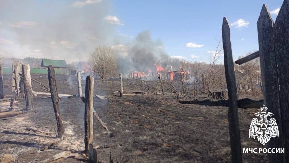 По данным ведомства, сообщение о возгорании поступило в 13:10. Пламя быстро перекинулось с травы на хозпостройки, и огонь начал стремительно распространяться. Для ликвидации пожара к месту происшествия были направлены 11 единиц техники и 25 человек личного состава, включая инженерную технику для подвоза воды, а также силы подразделения «Пожлес».