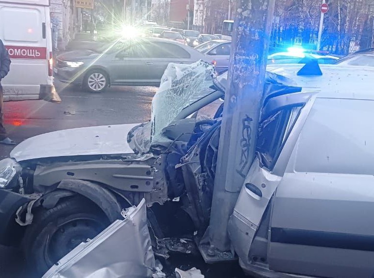 Вечером 6 апреля в Волжском районе Саратова водитель автомобиля «Лада Ларгус» пострадал в столкновении с другой машиной и столбом