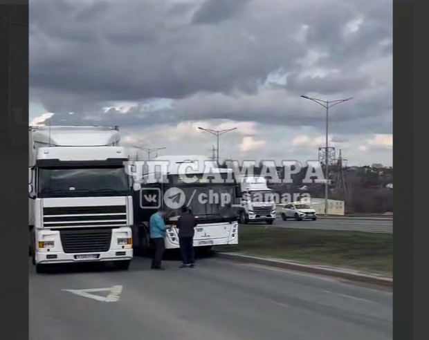 В Самаре на Московском шоссе врезались автобус №67 и большегруз