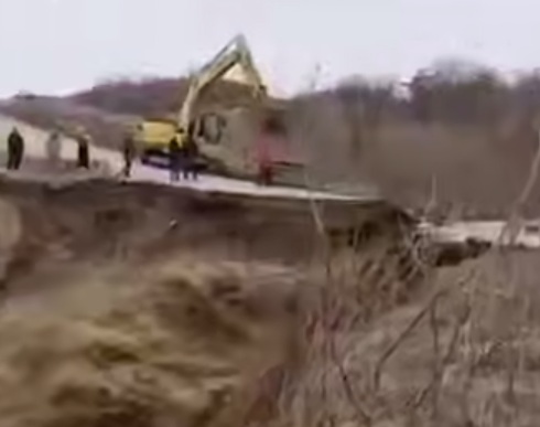 Ранее автомобилисты сняли на видео, как часть дороги провалилась под землю из-за подтопления в месте размещения водопропускной трубы, изначально обрушился лишь кусок, сейчас же асфальта там нет вовсе.