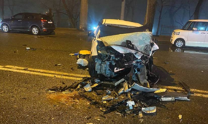В ночь на 20 апреля во Владивостоке на улице Светланской произошло мощное ДТП с участием двух легковых автомобилей. В столкновении погиб человек и двое пострадали