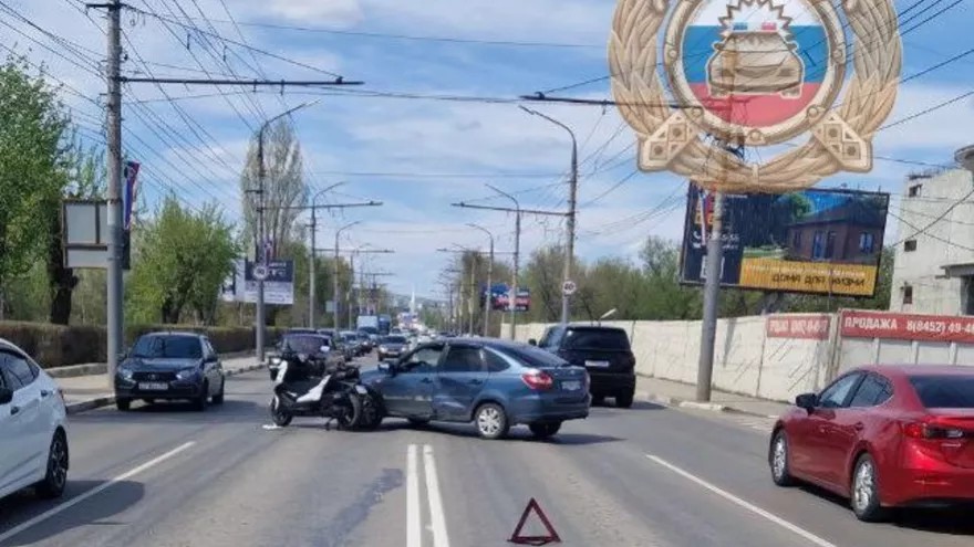 В Саратовской области днем 20 апреля произошла дорожная авария с участием легкового автомобиля и мотоцикла