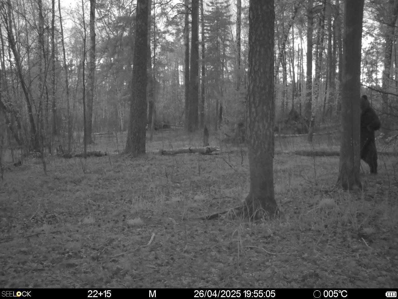 В Окском заповеднике заметили медведя, который прятался за стволом сосны