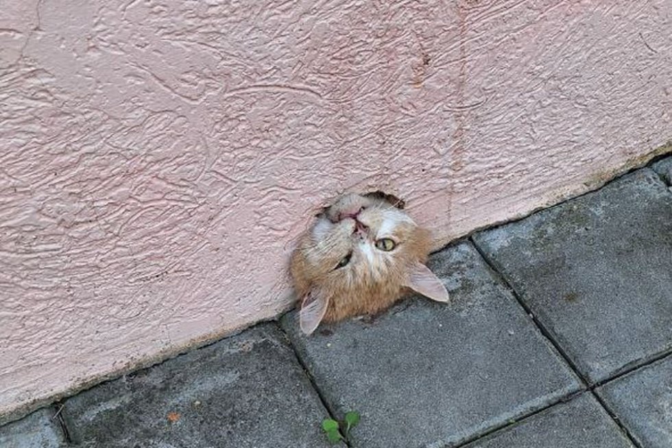 Инцидент произошёл, когда местные жители заметили, что животное застряло в узком отверстии бетонного забора, предназначенном для слива дождевой воды. Поняв, что кот не может выбраться самостоятельно, неравнодушные люди обратились за помощью к спасателям.