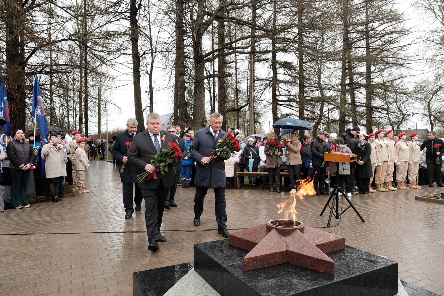 Александр Дронов, обратившись к участникам мероприятия, отметил, что в воинских захоронениях на территории округа покоятся около 900 бойцов, погибших при освобождении района. Глава региона поблагодарил компанию «Газпром» за работу по подключению мемориалов к газу для обеспечения непрерывного горения и поздравил участников акции с приближающимся 80-летием Победы в Великой Отечественной войне.