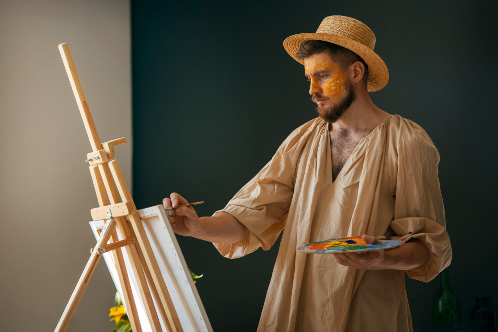 Пьяный гражданин ворвался в рабочую зону Сергея Шутова — известного в городе уличного живописца — и начал вести себя агрессивно. Он утверждал, что имеет полное право находиться на этом месте, и даже угрожал пройтись по разложенным картинам.