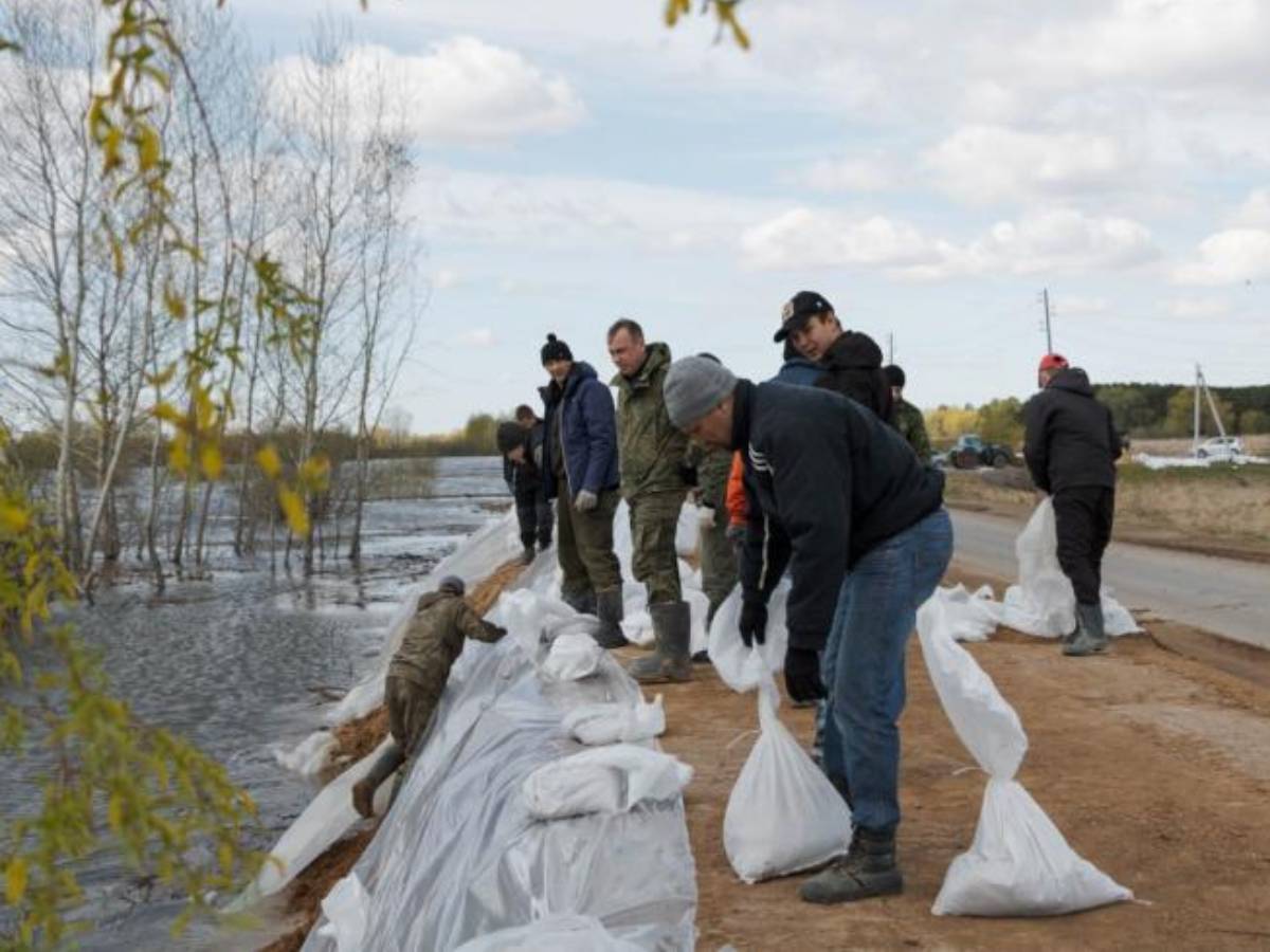 На плечи волонтёров с целью минимизировать угрозу для населённого пункта возложены обязанности по укреплению откосов посредством эксплуатации мешков с песком и плёнки.