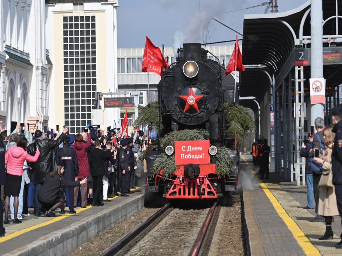 С железнодорожного вокзала Хабаровска торжественно отправился в путь Поезд Победы