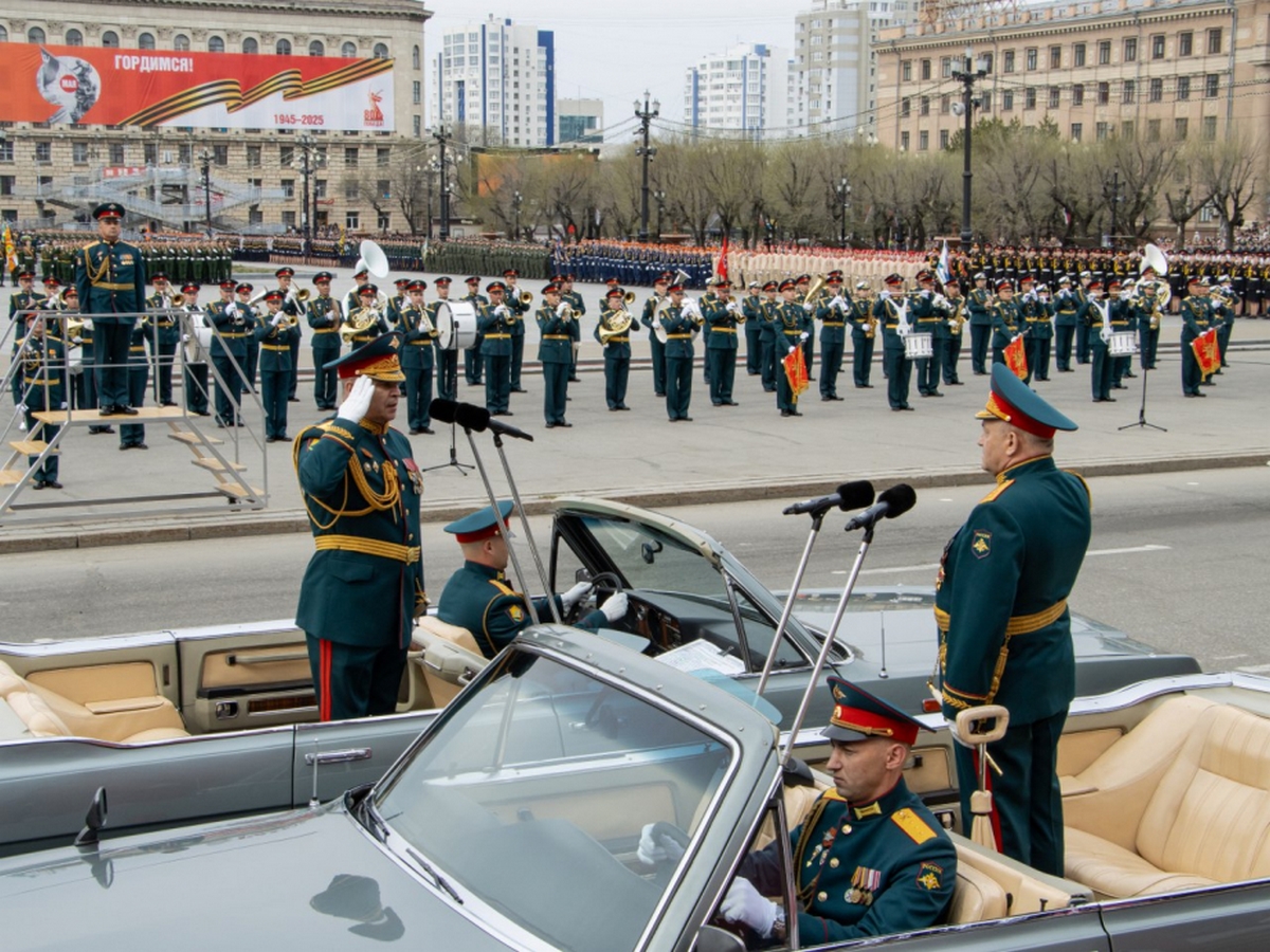 В столице Хабаровского края, где находится штаб ВВО, состоялся самый масштабный в Дальневосточном федеральном округе парад в честь 80-летия Великой Победы. По центральной площади города , которая по своим размерам уступает только Красной Площади в Москве, прошли, печатая шаг, более трёх тысяч человек и прогромыхали почти полторы сотни образцов вооружения и техники. А сразу после этого состоялось выступление ансамбля ВВО и сводного военного оркестра. Концерт начался с песни «Поклонимся великим тем годам». Слушая ее, люди, сидящие на трибунах, встали.