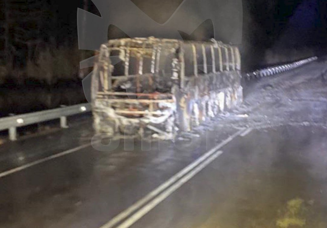 Пассажирский автобус сгорел дотла на трассе в Хабаровском крае