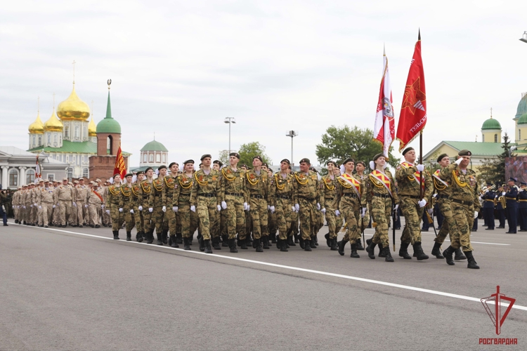 За ними прошла знаменная группа с Государственным флагом Российской Федерации и копией Знамени Победы. Торжественным маршем по площади прошли воины-десантники 106-й тульской дивизии. Среди них были участники СВО. Также в параде участвовали парадные расчеты тульского Управления Федеральной службы судебных приставов, Федеральной противопожарной службы, регионального управления МЧС России и спасательного центра.