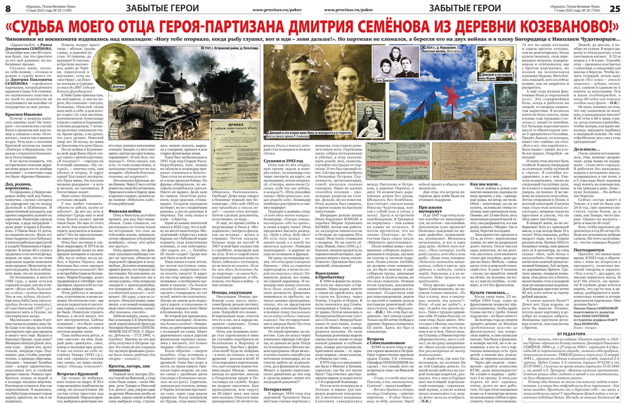 Судьба орденоносца с линии «Пантера» героя-партизана Дмитрия Семёнова из деревни Козеваново