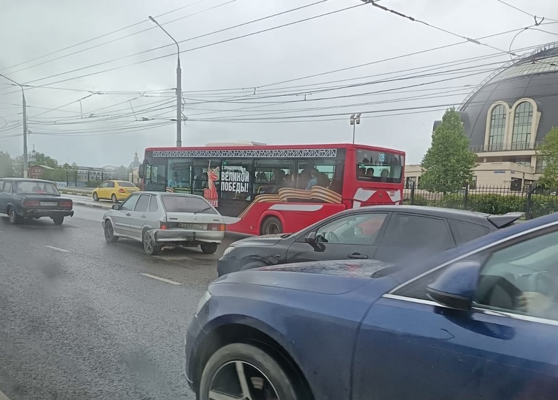 В Туле произошла авария с участием трех легковых автомобилей. Она случилась прямо напротив Музея оружия. Машины столкнулись «паровозиком».