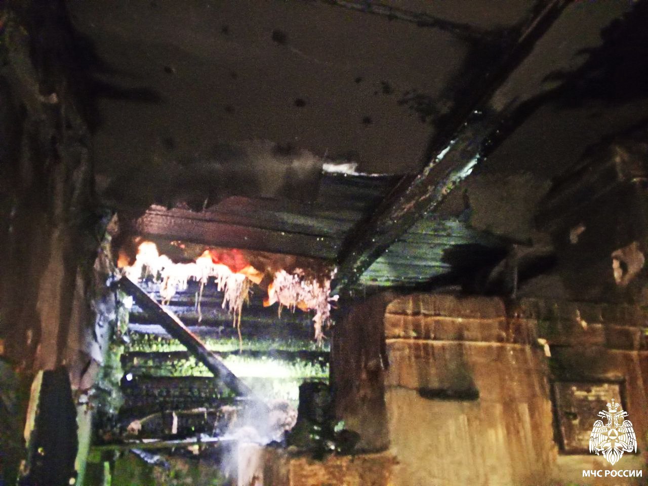 На место выезжали шесть пожарных при поддержке двух единиц спецтехники. Им удалось отстоять здание у стихии, однако кровля, потолок и часть стены были серьезно повреждены огнем.