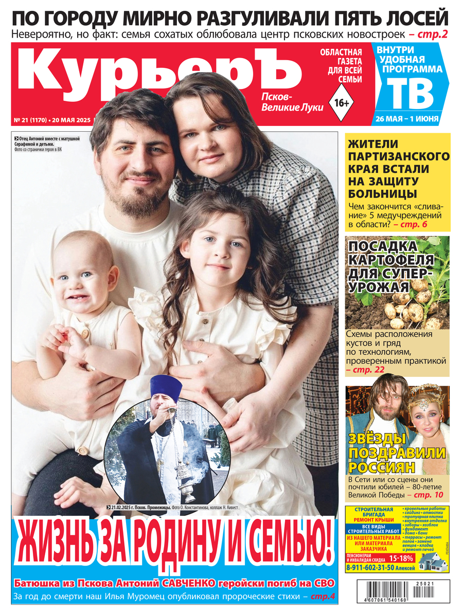 Напомним, 12 мая при исполнении пастырских обязанностей во время прилёта РСЗО «HIMARS» погиб псковский фронтовой батюшка, Антоний САВЧЕНКО («КрЪ» № 21 от 20 мая «Нашего Илью Муромца перевели в Господний полк»)