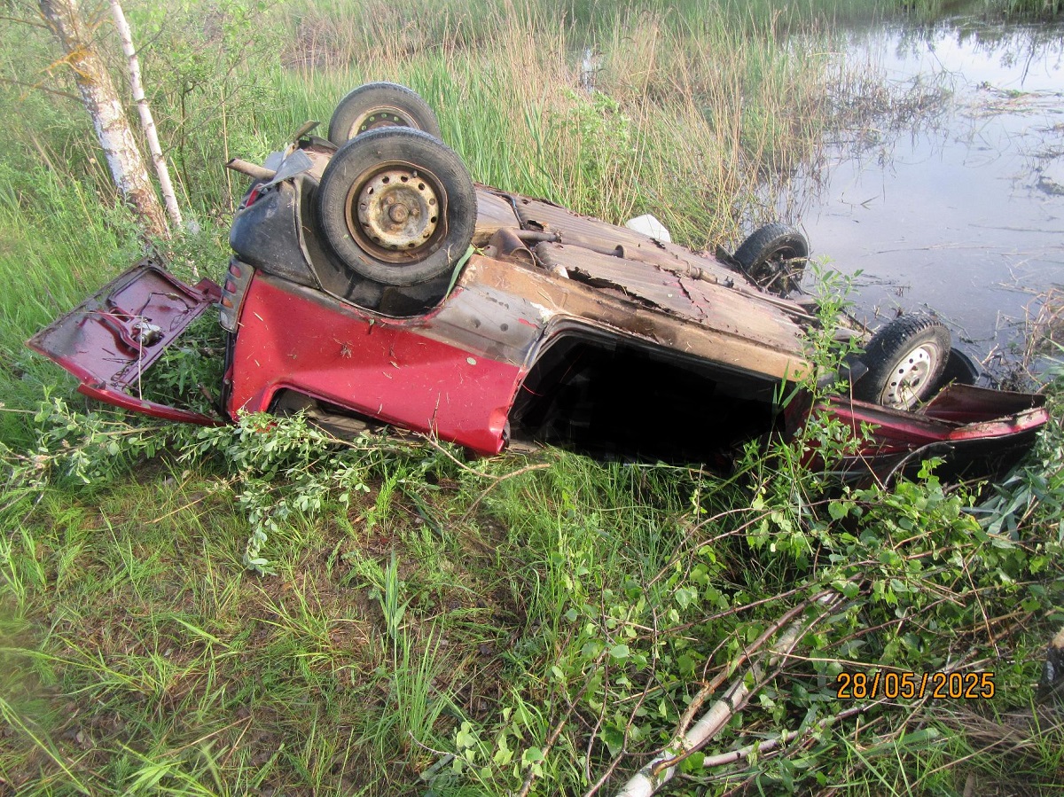 Около 5:00 22-летний водитель и 30-летний пассажир проезжали на «ВАЗ 1111» 22-й км дороги. В этот момент на проезжей части оказался лось. Столкновение было огромной силы. Машину выбросило на обочину, а затем в кювет. После этого авто перевернулось на крушу и сползло в заболоченную местность.