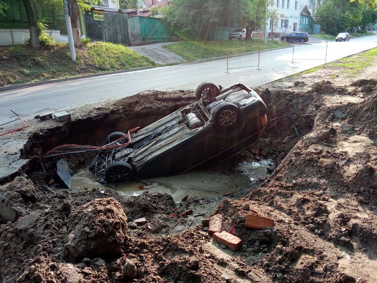 В ночь на 6 июня в Волжском районе Саратова автомобиль рухнул в коммунальную яму
