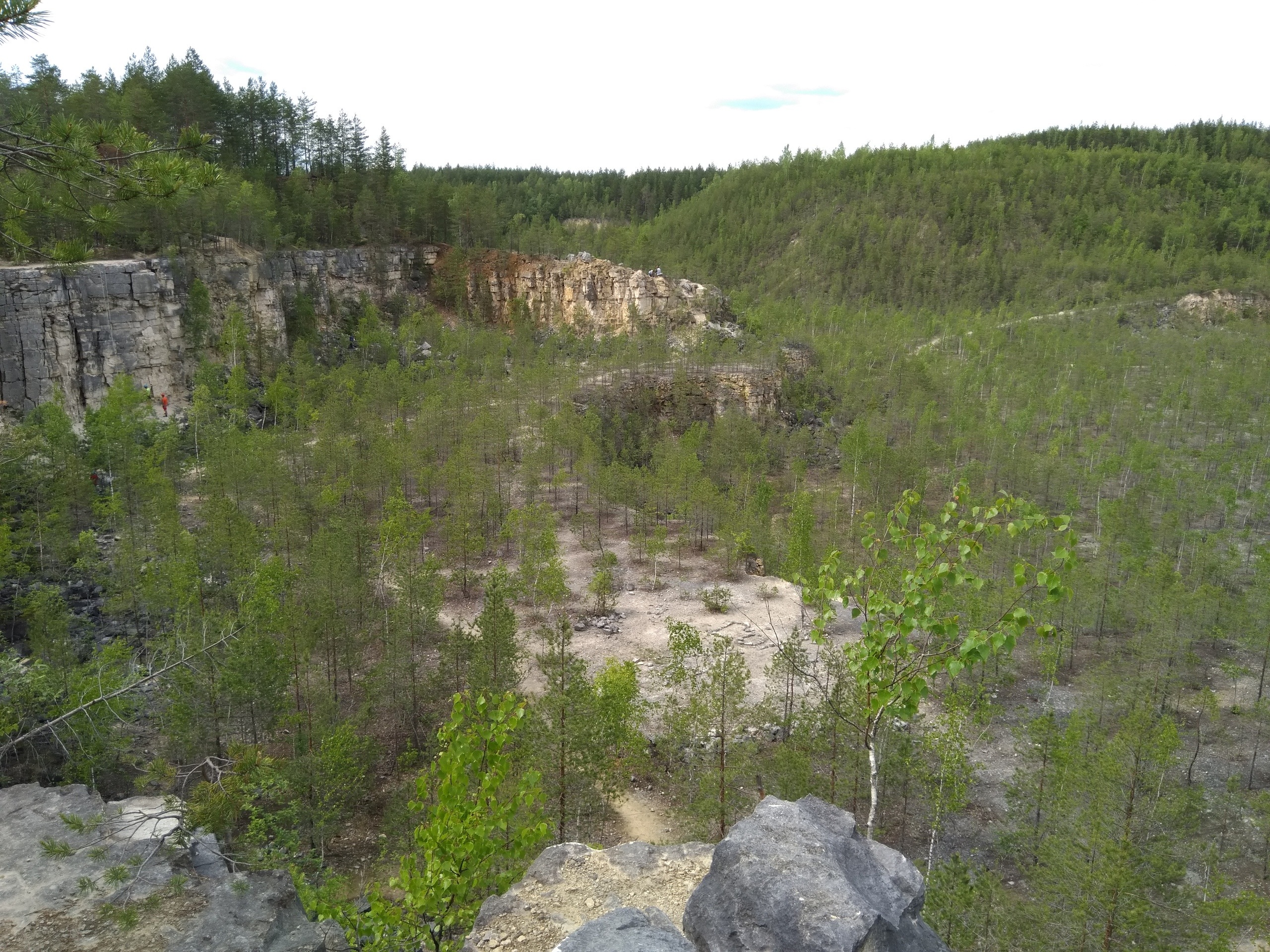 Помимо этого, экскурсанты поднимаются на самую высокую и видовую точку Дюкинских карьеров. Причем эта насыпь сформировалась из остатков деревьев и плодородного слоя земли – так называемая вскрыша, когда месторождение известняка подготавливали к промышленной добыче. Позже это место было засажено новым лесом.