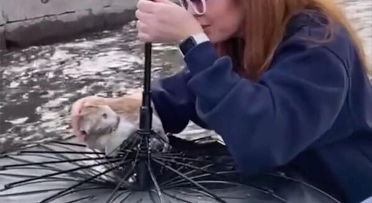 Девушки в Петербурге вытащили тонущего котенка из канала с помощью зонта