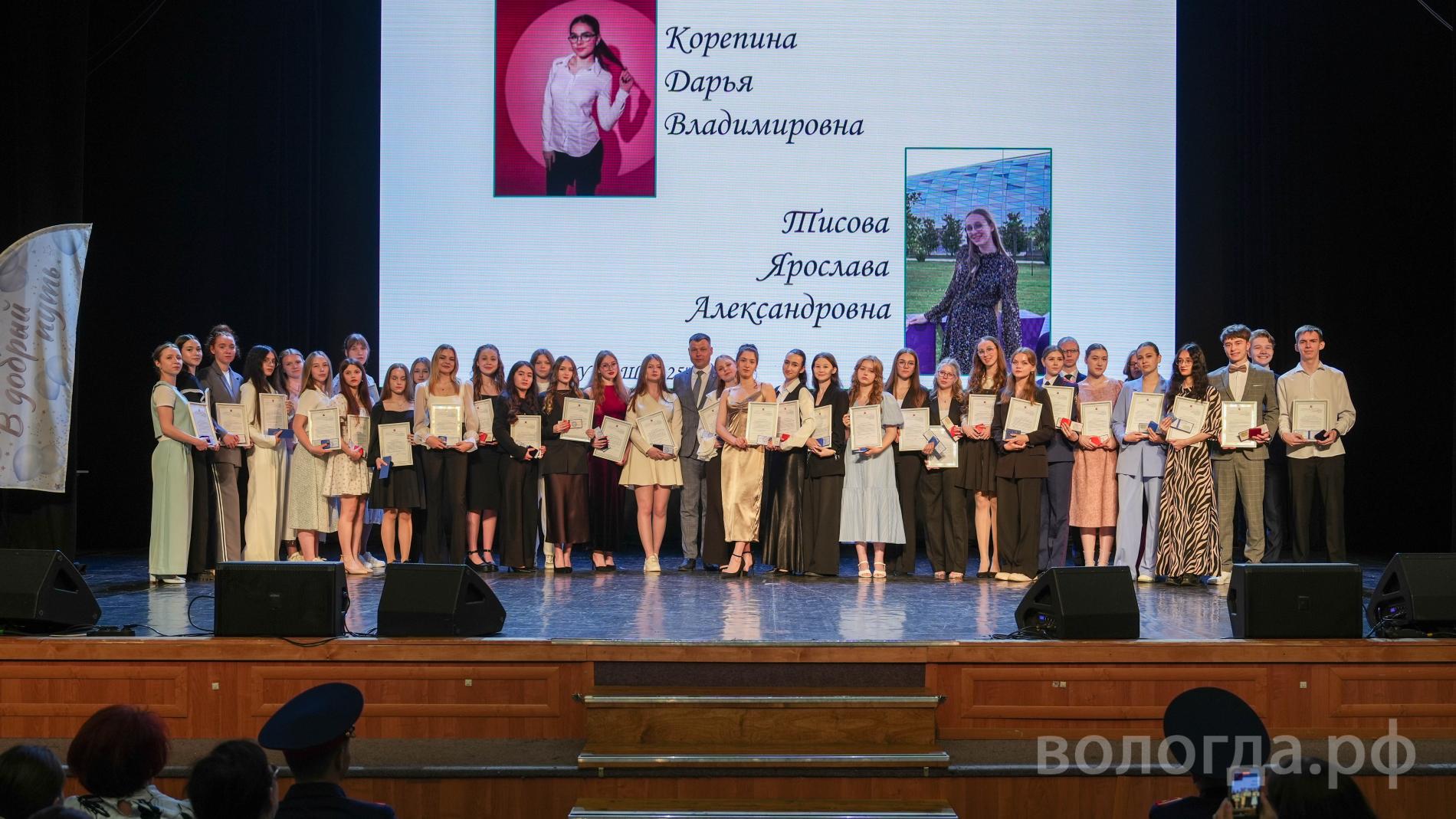 В городе металлургов и химиков 117 медалистов, из них 19 стобалльников. Город щедро наградил своих отличников: 20 тысяч рублей каждому стобалльнику, 10 тысяч — золотым медалистам и 5 тысяч — серебряным. Врио главы города Николай Сальников призвал выпускников вернуться в родной город после учебы, подчеркнув их ценность для Череповца.