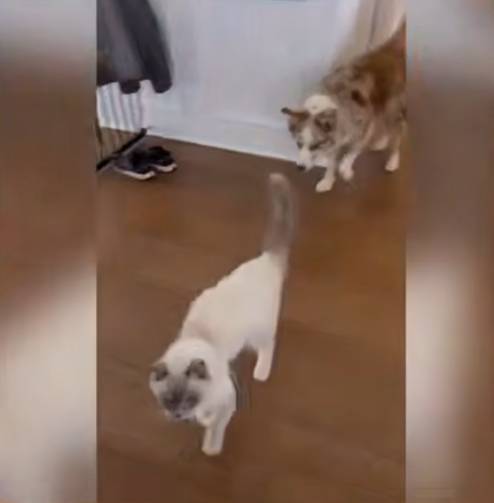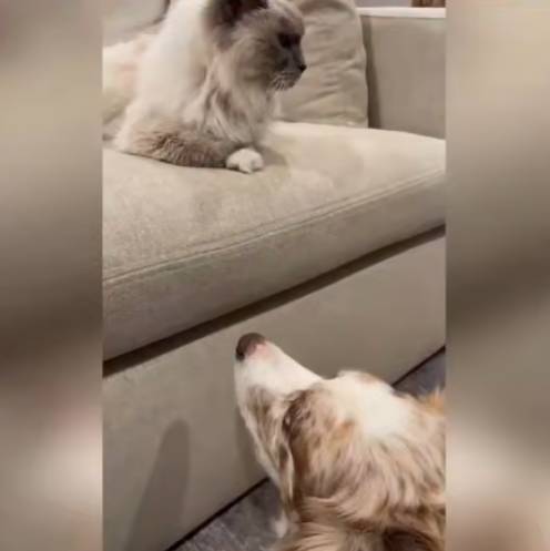 На первый взгляд, это просто забавное видео: собака, явно из породы пастушьих, ходит за котом по дому, словно верный телохранитель. Кот, в свою очередь, с царственным спокойствием принимает такое внимание, иногда одаривая своего «пастуха» снисходительным взглядом. Но пользователи Сети заметили особую деталь: оба животных обладают похожим окрасом шерсти, из-за чего выглядят как две капли воды.