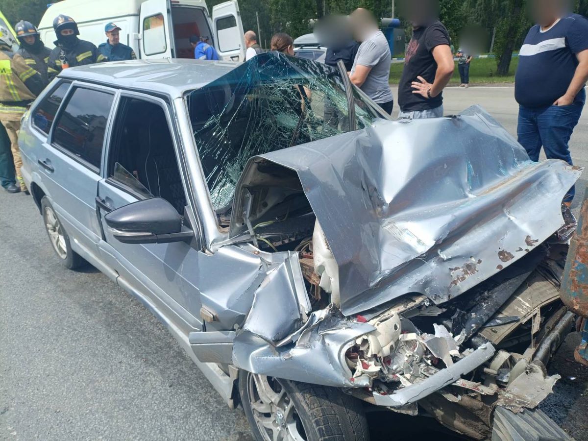 В Челябинске автомобиль своротил часть кузова при таране грузовика