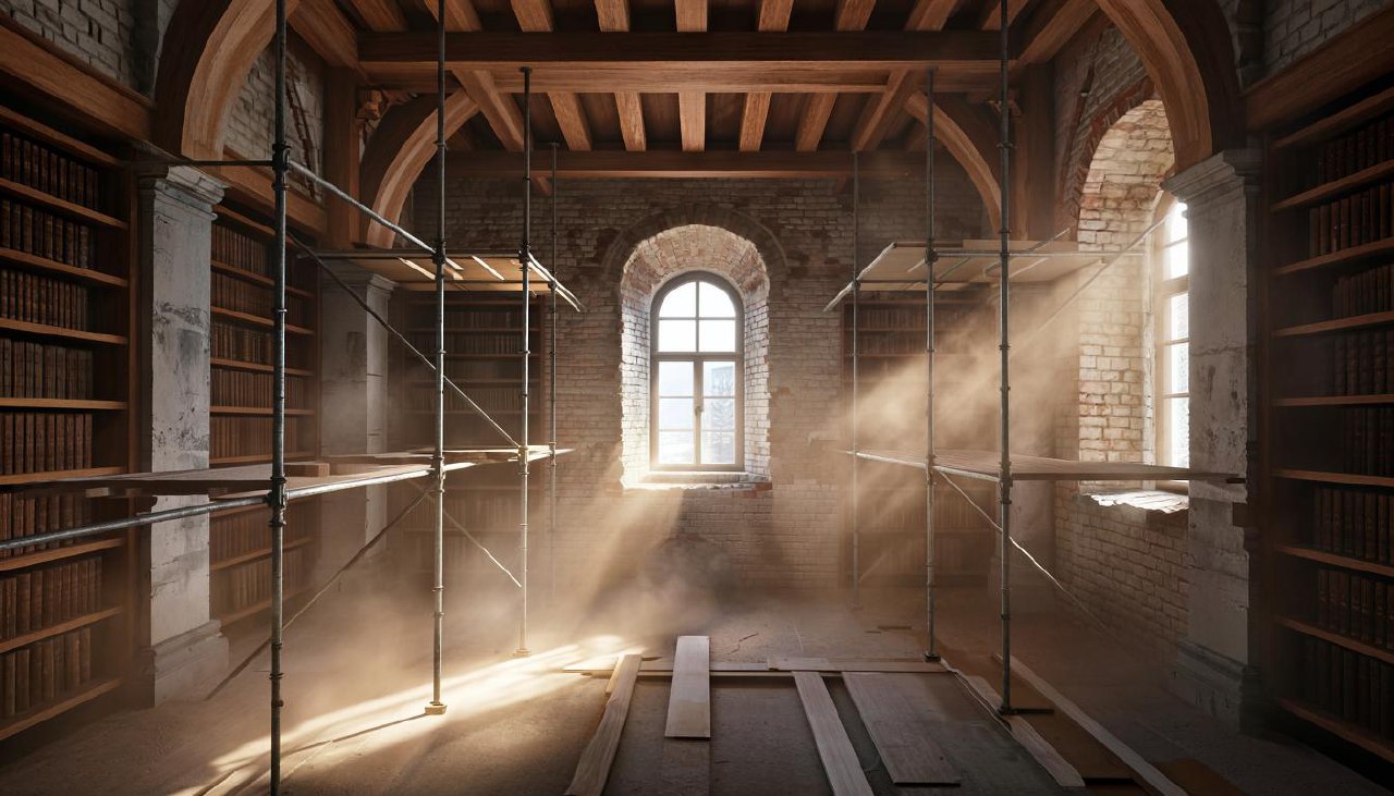 Работы по обновлению библиотеки стартовали в марте 2025 года. На сегодняшний день уже выполнен значительный объем работ: демонтированы старые конструкции, установлены новые окна, смонтирована стропильная система крыши и металлопрофиль, утеплены потолочные перекрытия и залиты полы. В ближайших планах – замена системы отопления и электропроводки, а также обновление фасада здания.