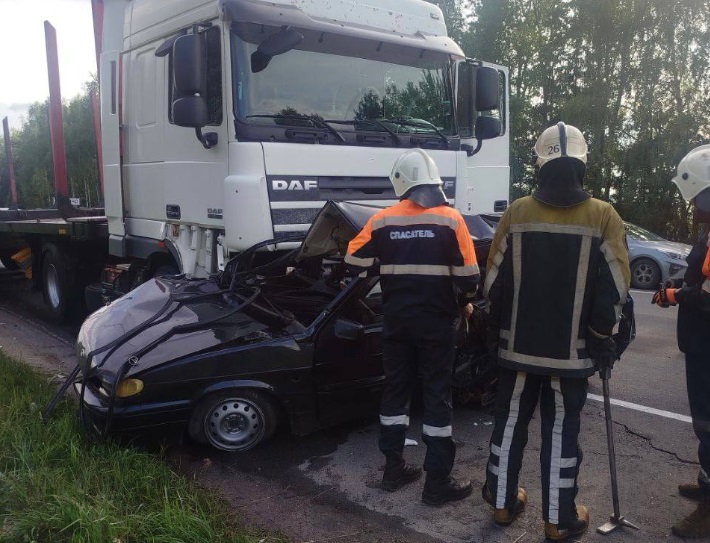 Водитель «Лады» четырнадцатой модели выехал на встречную полосу, где столкнулся с большегрузом «ДАФ».